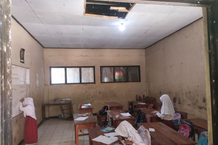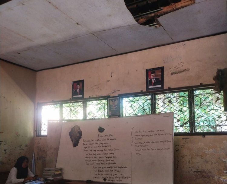Diakui Ika, dari 5 bangunan kelas dan 1 Ruang Guru yang ada, 2 bangunan terpaksa tidak digunakan lantaran kondisinya yang sudah tak beratap.