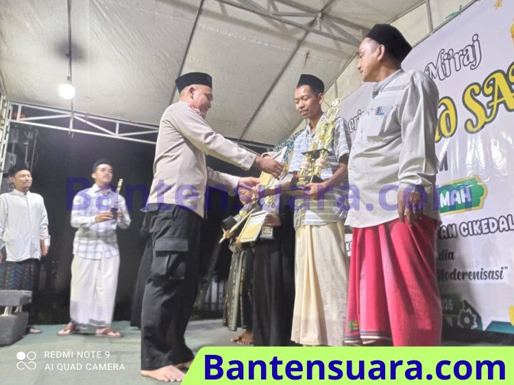 Anggota Polsek Cikedal Aipda Feri Rintonga Saat Memberikan Piagam Penghargaan terhadap Peserta Perlombaan PHBI