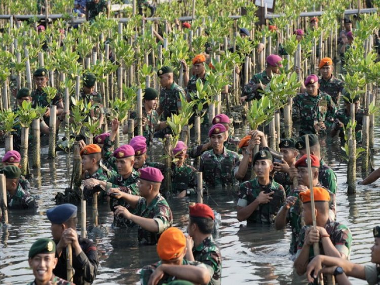 "Penanaman secara serentak yang dilaksanakan dari Sabang sampai Merauke bertujuan agar laut menjadi subur dan terhindar dari abrasi serta menyebarluaskan dan memberi contoh bahwa kita juga mampu melaksanakan penanaman mangrove tersebut," ujar Panglima TNI.
