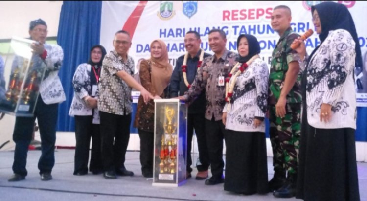Puncak acara perayaan Hari Ulang Tahun (HUT) Guru dan Persatuan Guru Rebublik Indonesia (PGRI) Kabupaten Pandeglang, menggelar resepsi di hotel Wira Carita dilengkapi dengan pemberian santunan untuk ratusan anak yatim dari seponsor cara Koperasi Simpan Pinjam (KSP) Sabar Subur Aldy Berkah sebagai mitra PGRI sekaligus pengumuman dan pembagian hadiah untuk para juara lomba olahraga dan pentas seni dari peserta seluruh PGRI Cabang tingkat Kecamatan, Kamis (13/12/2024).
